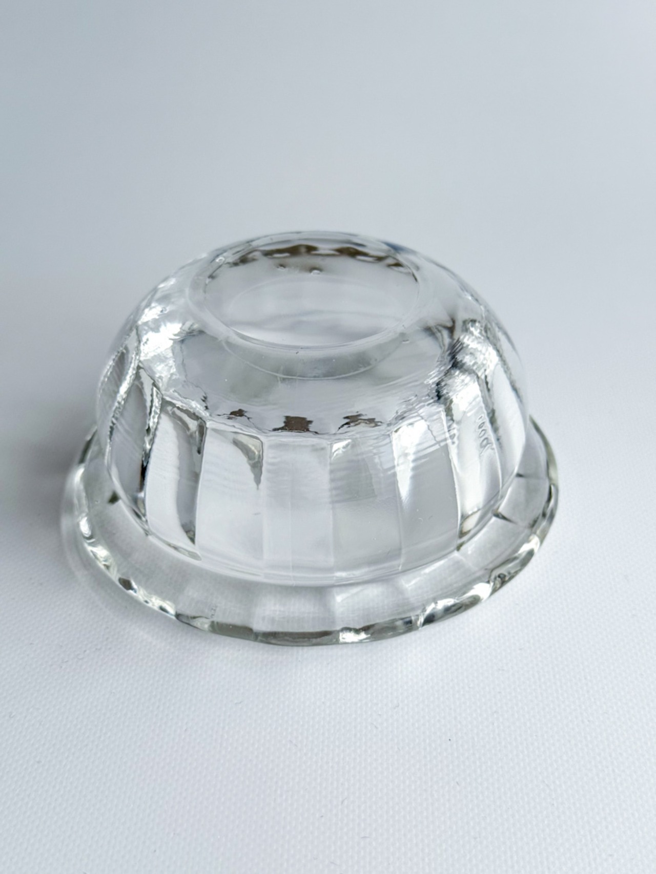 底に三方向に渡ってうっすらしたキズ、茶色くなったキズがありますが、ヒビやカケはなく、ガラスの透明度も高く、古いものとしては良い状態です。