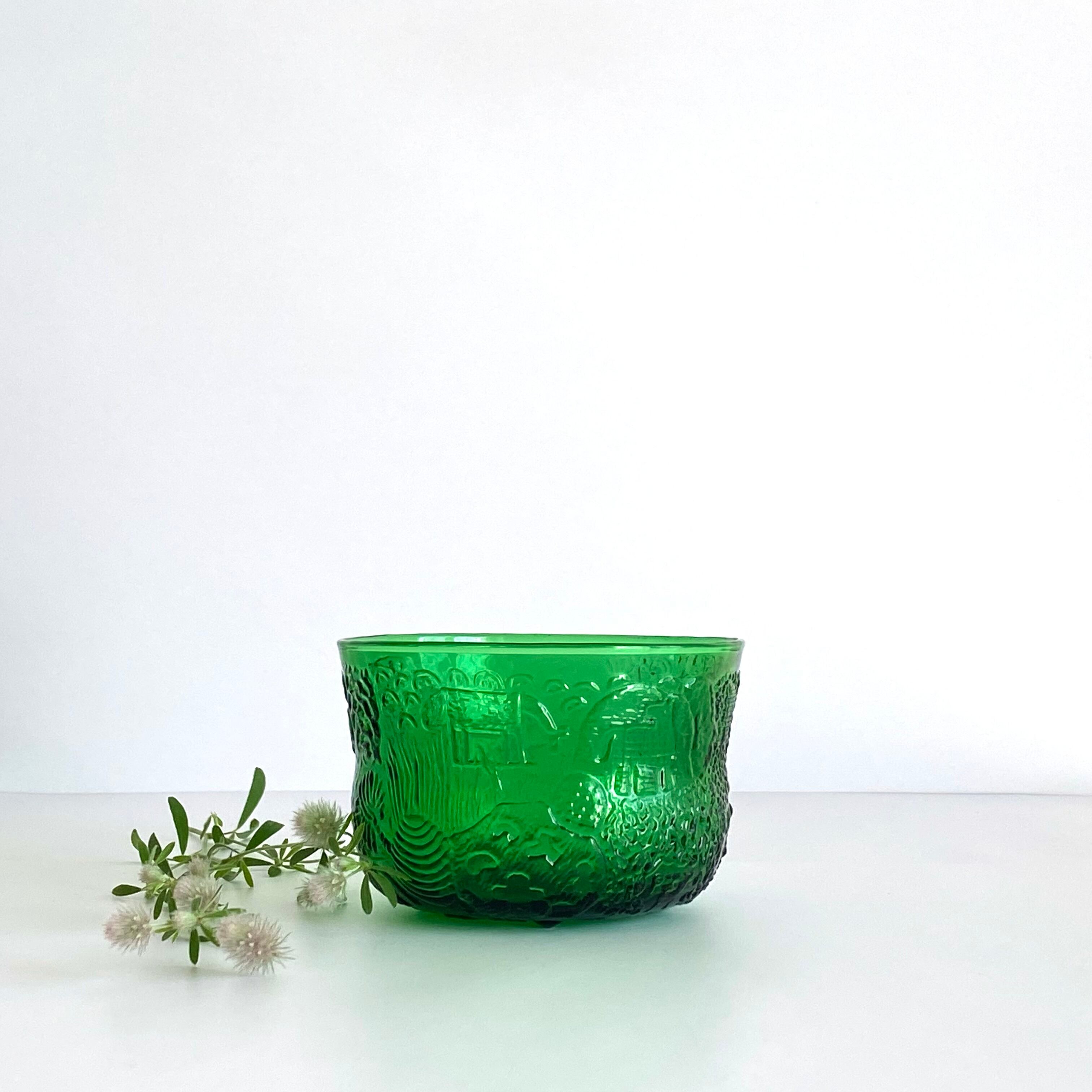 フィンランド ヌータヤルヴィ ファウナ 植物と動物の穏やかなガラスボウル【Vintage】